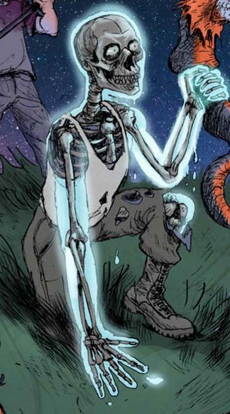 Gray est un squelette humain à la peau grise et transparente. Il porte un pantalon de camouflage, un débardeur et des bottes militaires gris.